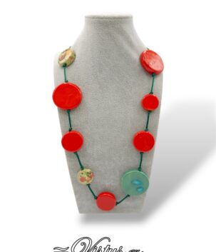 Le collane in ceramica per donna Virtus Mediterraneo sono create a mano nelle botteghe di Sciacca, con lavorazioni lente, gesti antichi e smalti brillanti. Ogni elemento è modellato, cotto, decorato e rifinito con cura per ottenere forme armoniose, leggere da indossare ma visivamente forti. I pendenti variano da piccole gocce di colore a composizioni più ampie, ma sempre equilibrate e piacevoli da portare ogni giorno. I toni richiamano l’identità mediterranea con sfumature marine, sabbiose e naturali, mentre le finiture lucide esaltano ogni dettaglio. La ceramica, oltre a essere ipoallergenica e resistente, mantiene intatta nel tempo la brillantezza degli smalti. Le collezioni proposte includono spesso set coordinati con orecchini e anelli per un look completo, oppure modelli unici per chi preferisce un pezzo distintivo. Le collane in ceramica per donna sono pensate per chi ama l’artigianato autentico, il design pulito e il piacere di indossare qualcosa che racconta una storia fatta di manualità, radici e bellezza quotidiana.