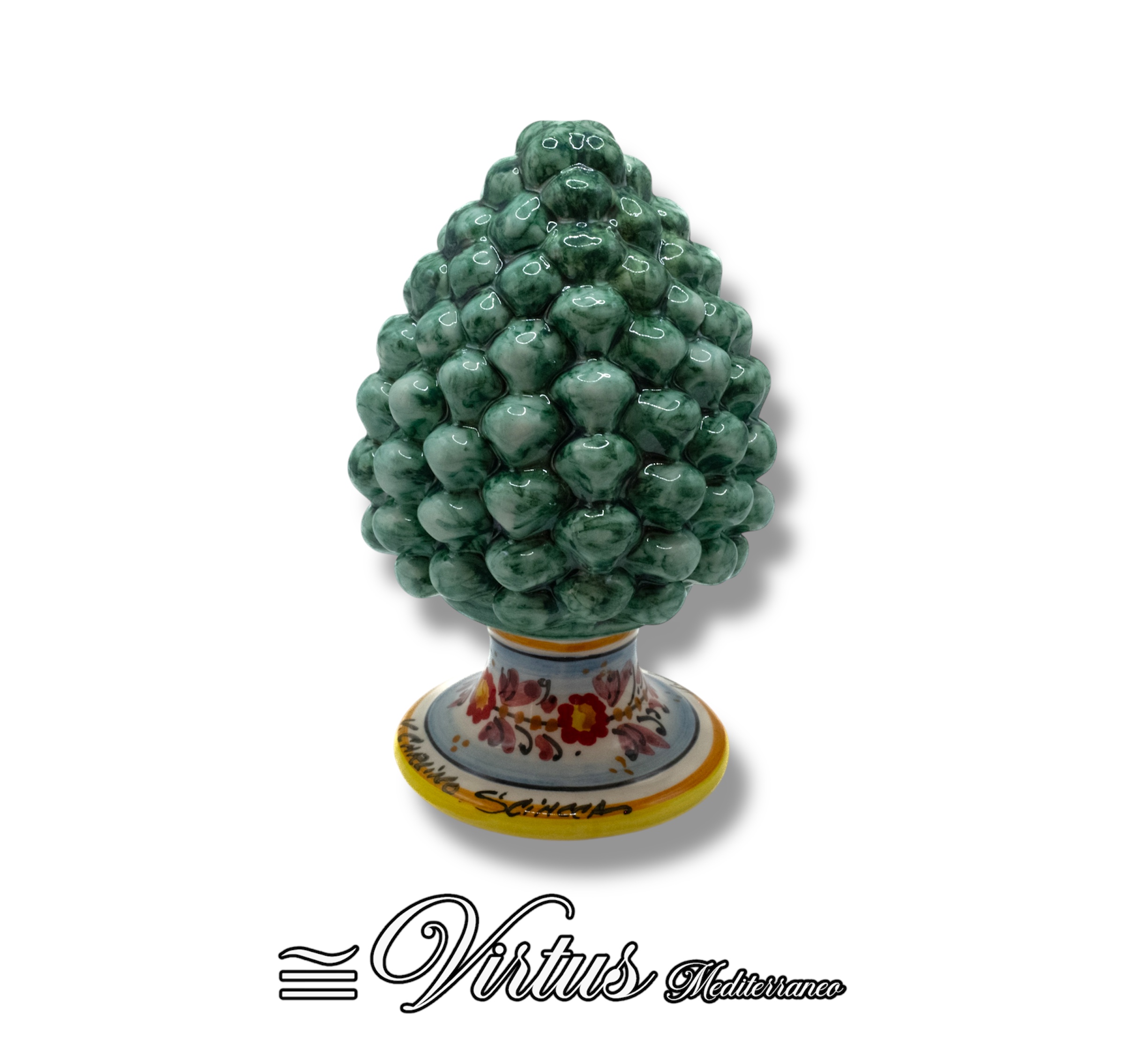Medium green pine cone handcrafted in Sciacca ceramic
