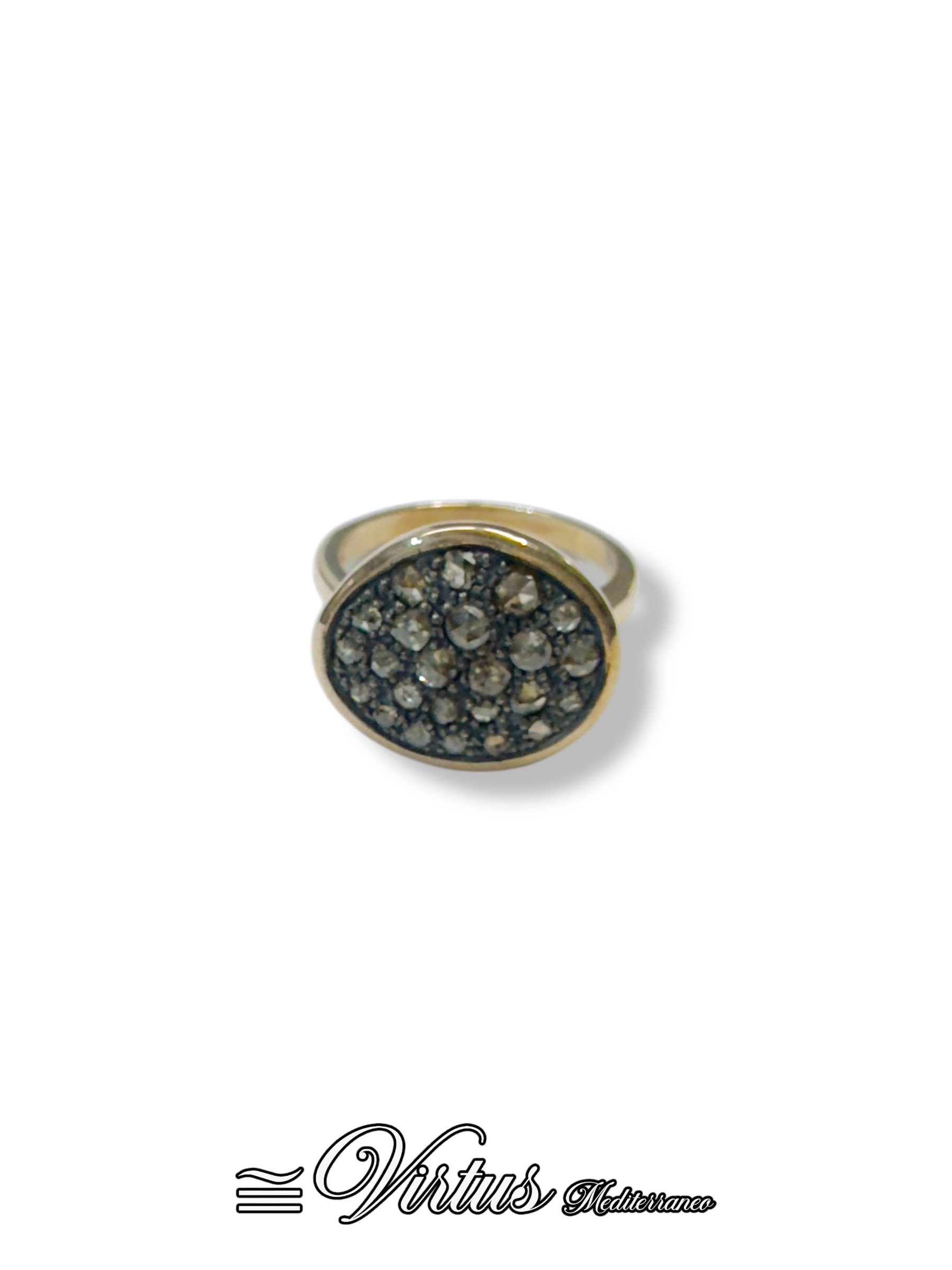 anello artigianale toppa siciliana in oro 375/000 gr. 4.60 con diamanti taglio rosetta ct. 0.95