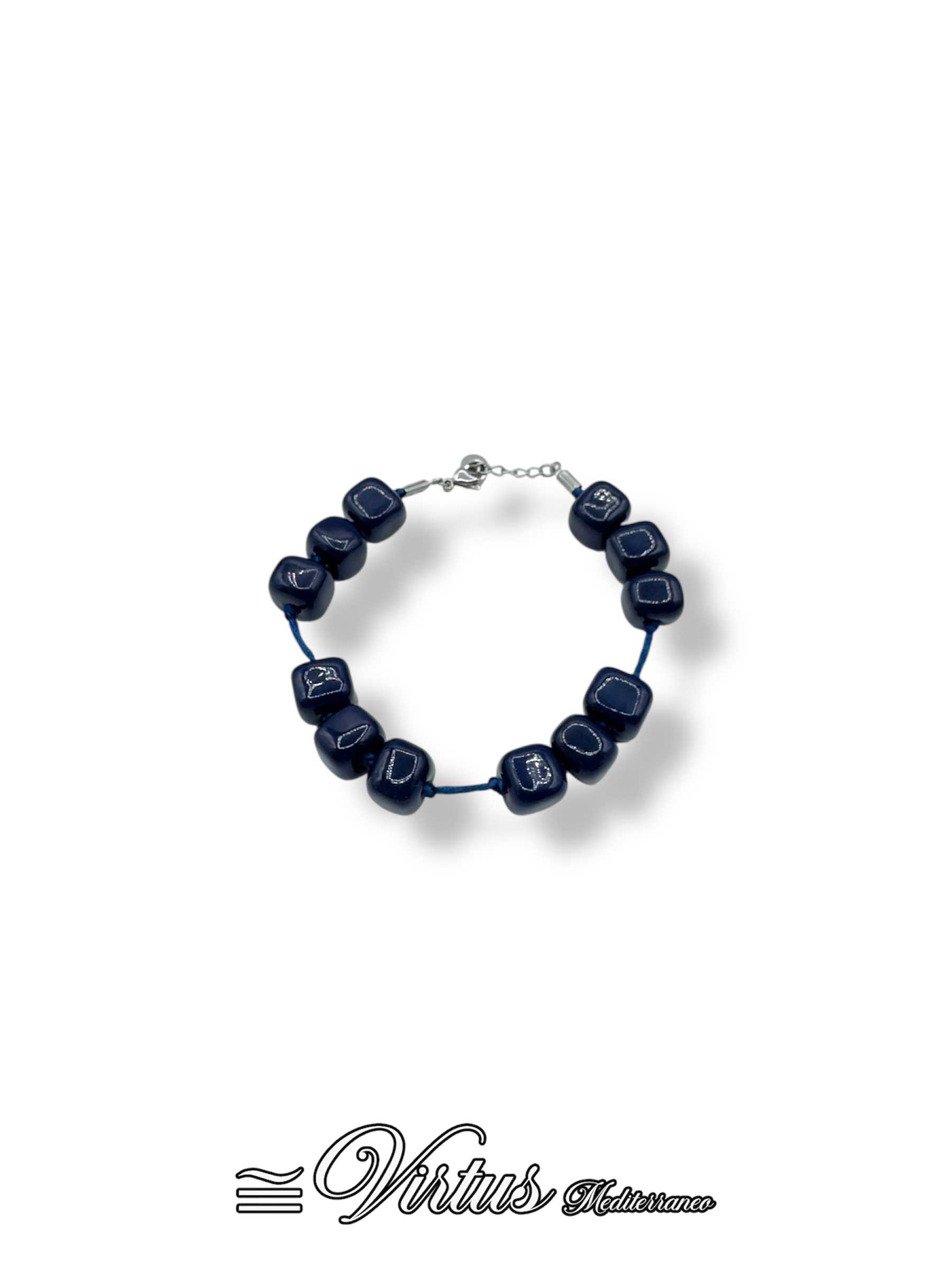bracciale artigianale in ceramica uomo a dadi blu scuro con chiusura acciaio inox anallergico