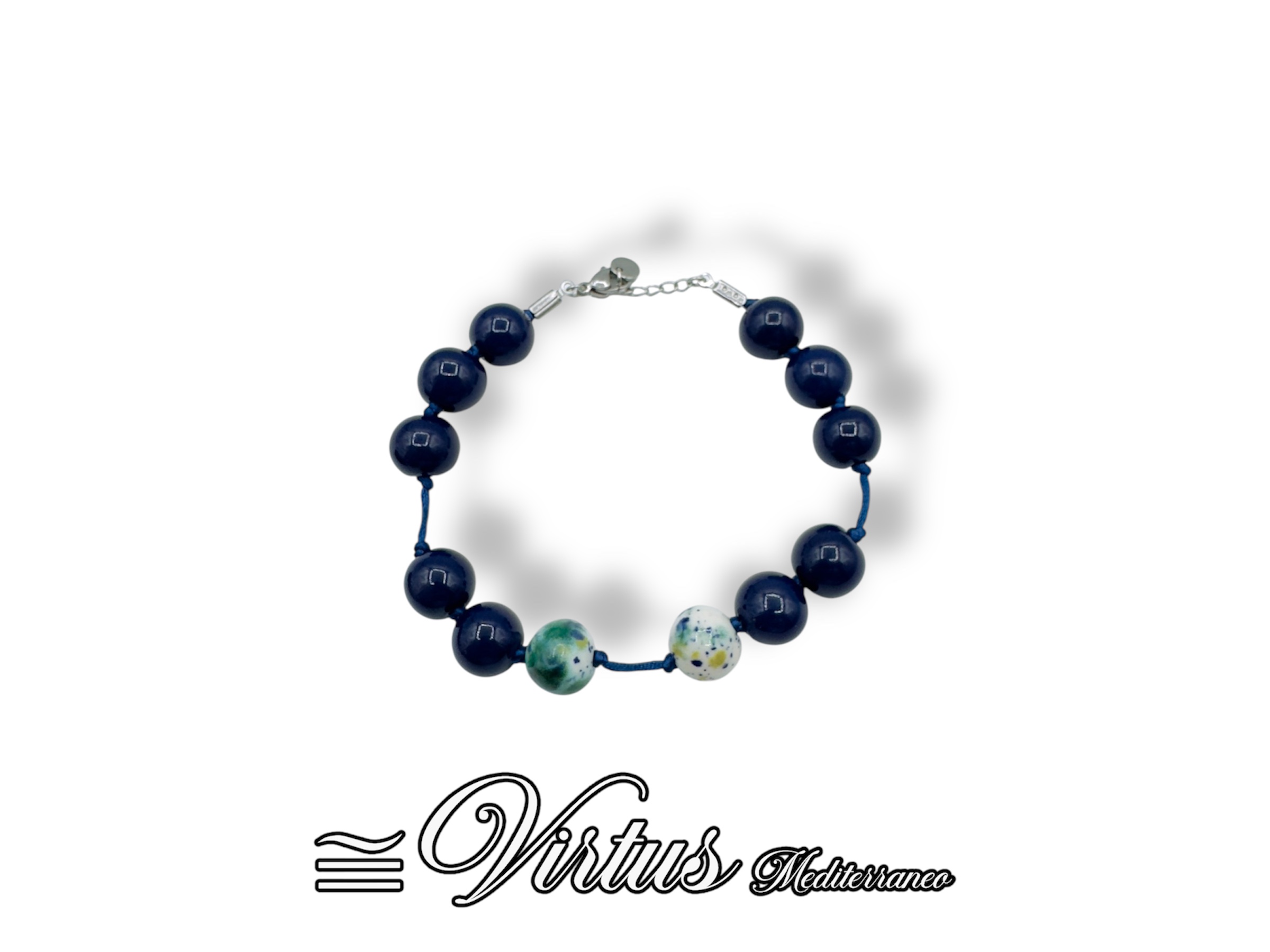 bracciale artigianale in ceramica uomo a sfere blu scuro con chiusura acciaio inox anallergico