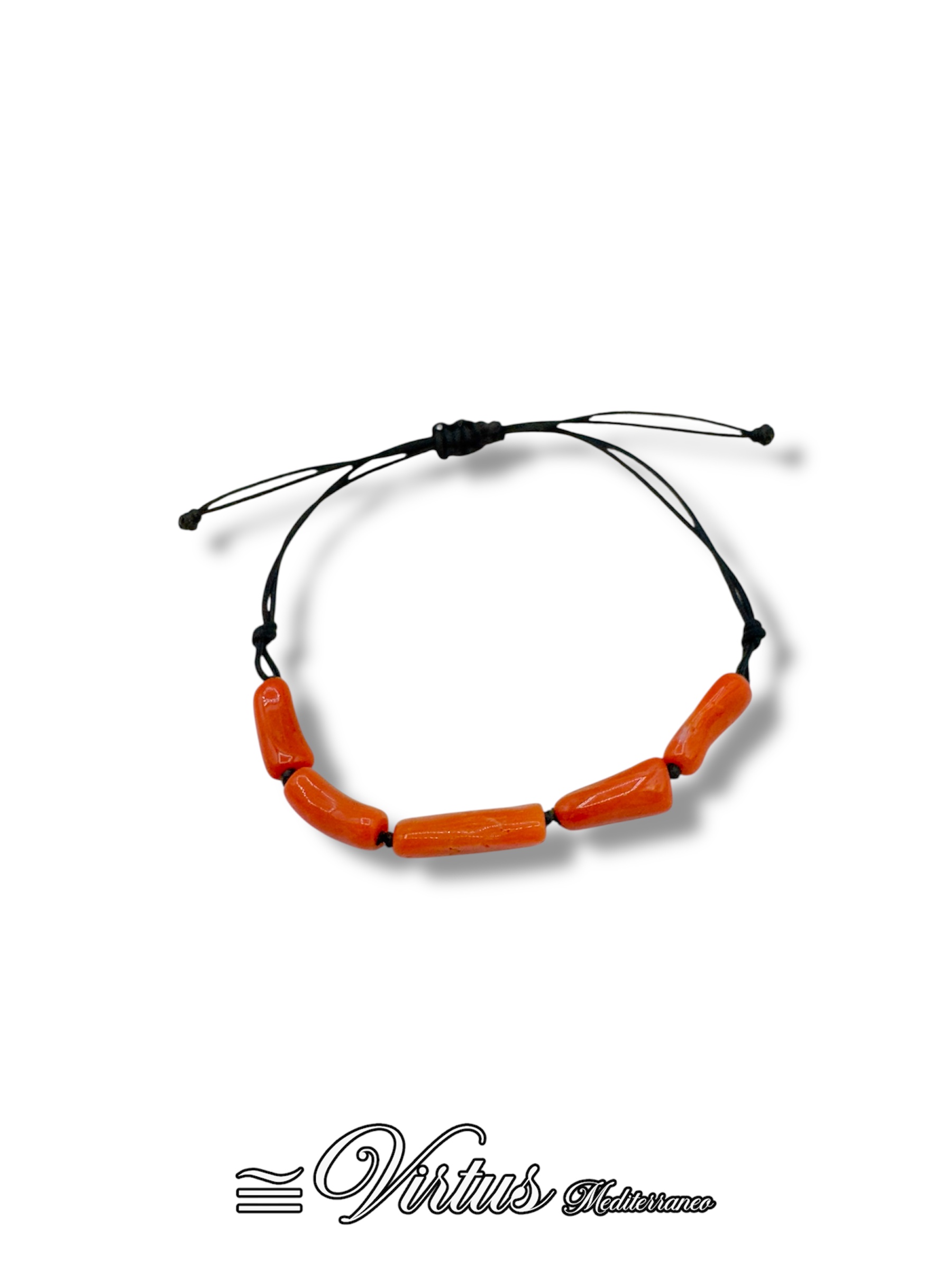 bracciale artigianale di corallo Sciacca a cannettoni e con cordoncino regolabile
