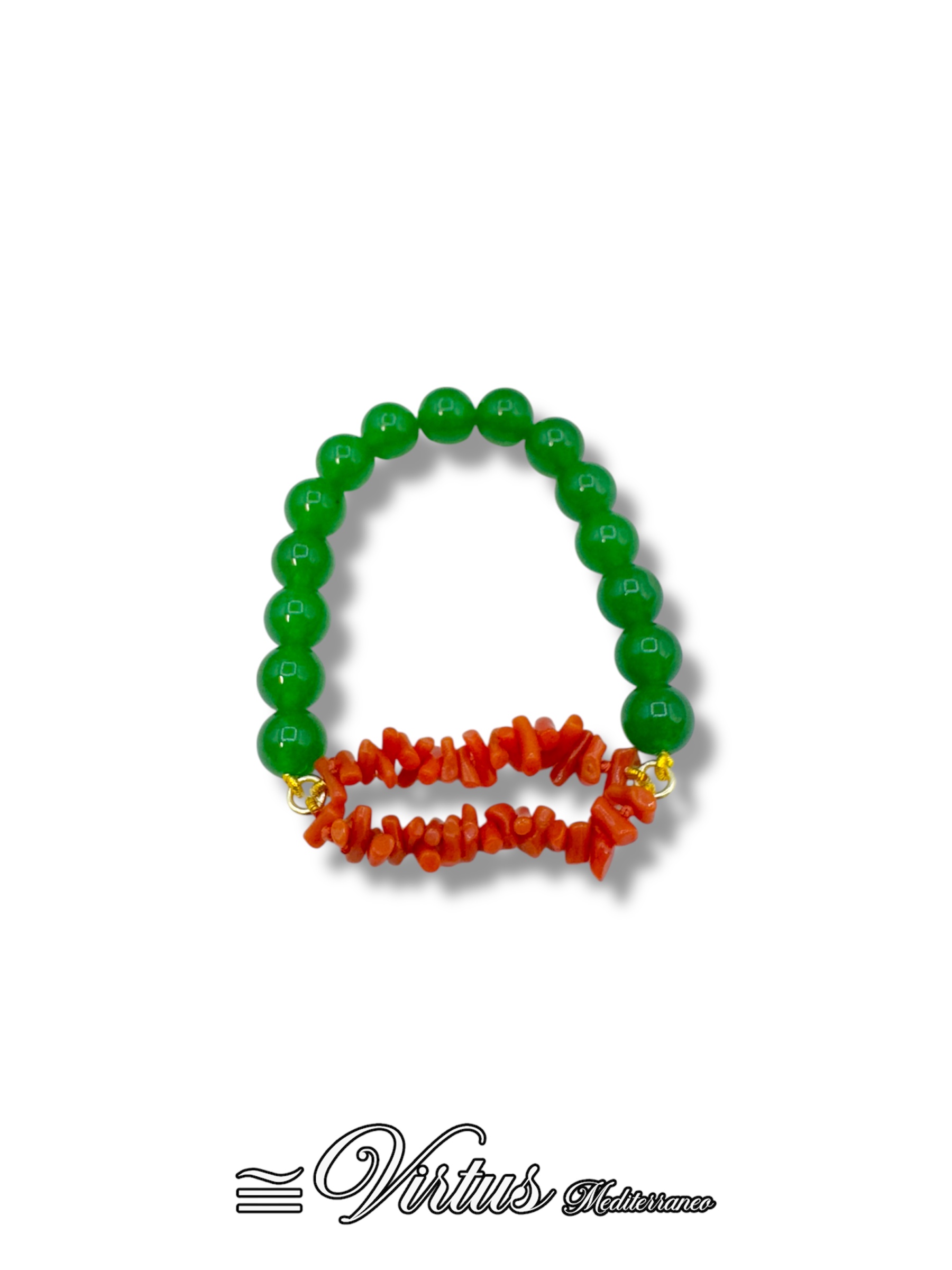 Bracciale elastico artigianale corallo Sciacca e agata verde