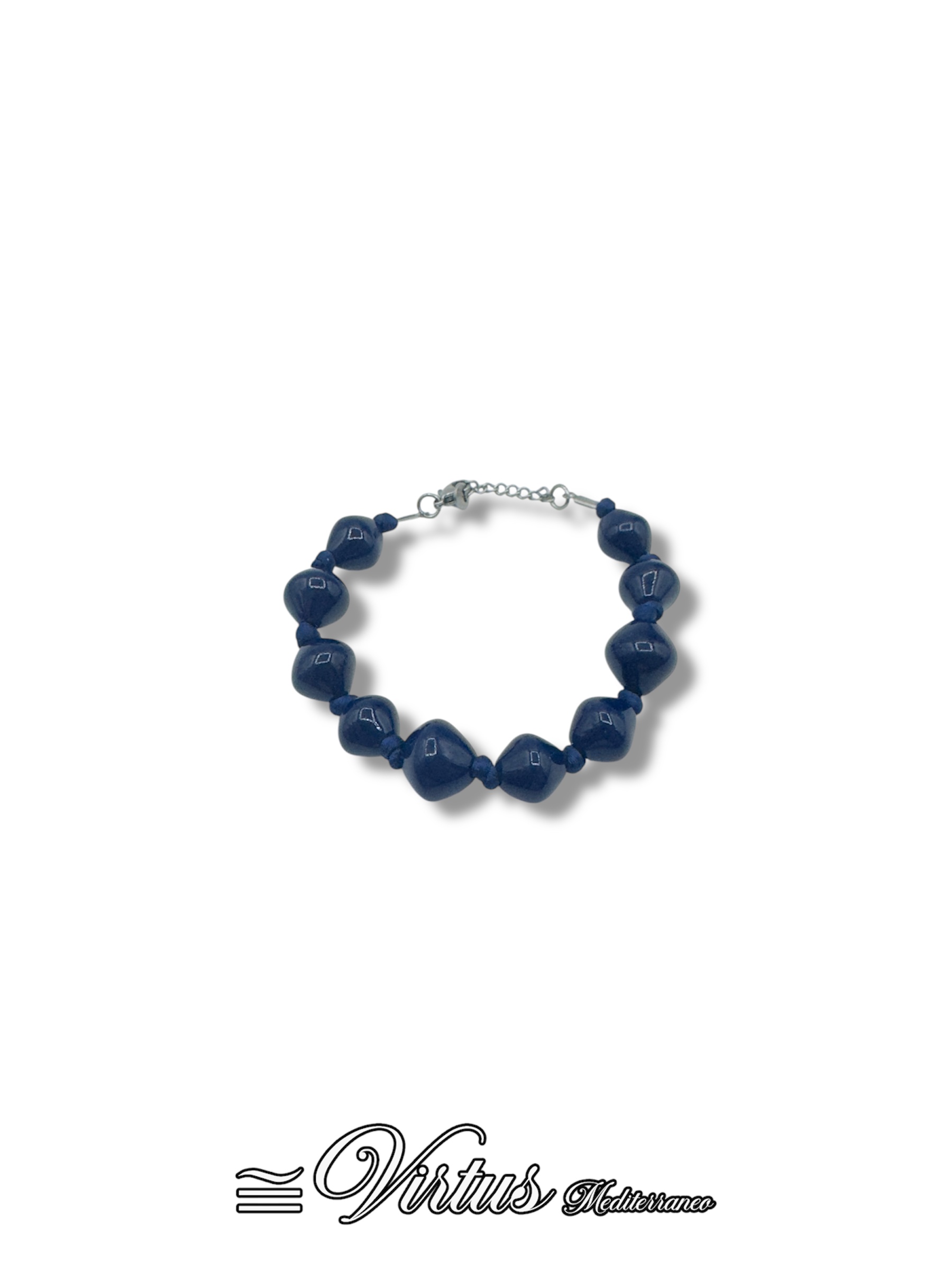 Bracciale trottoline artigianali Blu in ceramica con laccio coda di topo (3 mm) e chiusura acciaio inox anallergico