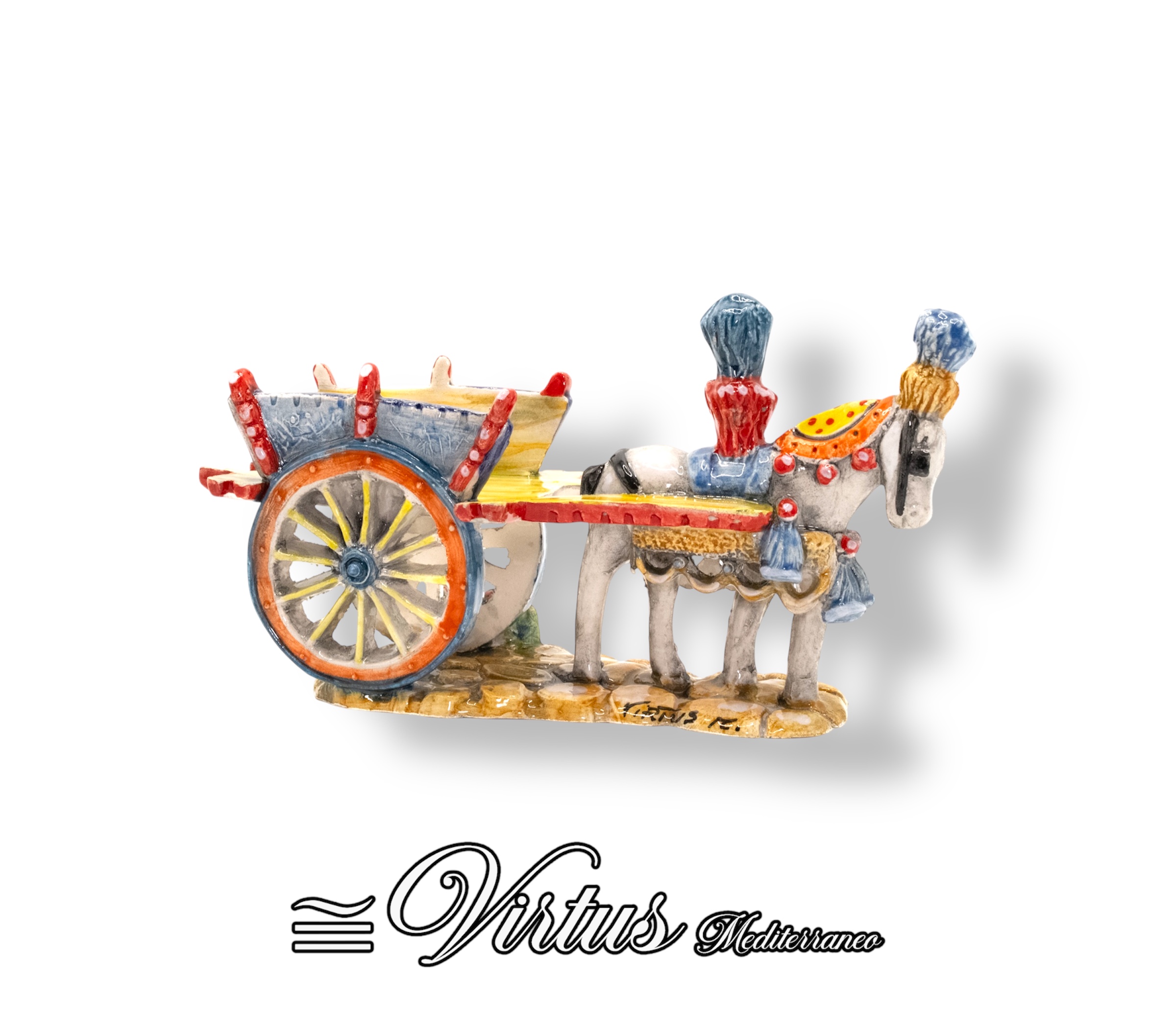 Carretto siciliano con cavallo medio artigianale Multi colore in ceramica