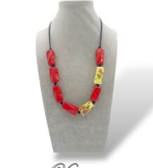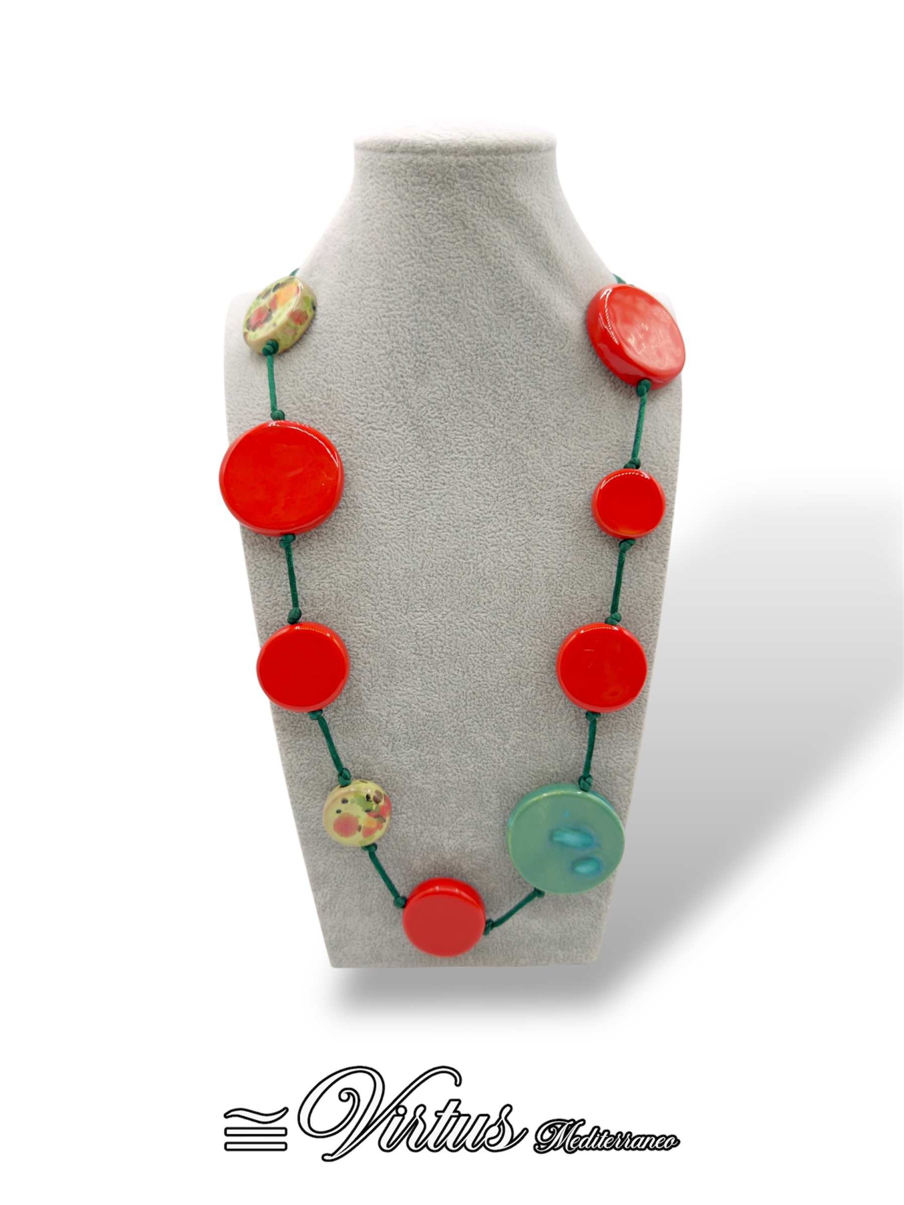 Collana a cerchi artigianali Multi colore in ceramica con laccio coda di topo (3 mm) e chiusura acciaio inox anallergico