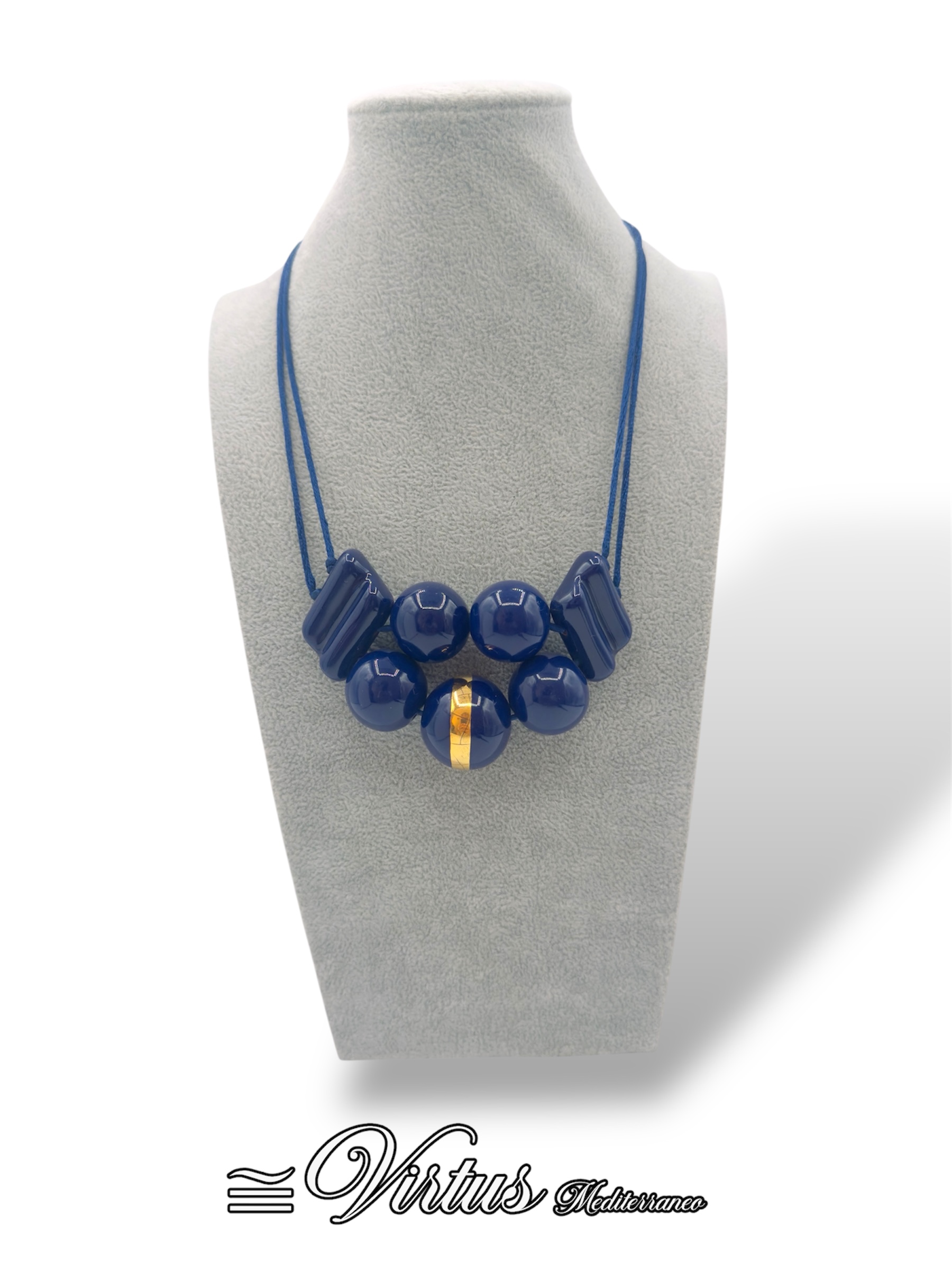 Collana a grappolo artigianale Multi colore in ceramica decorata in oro con laccio coda di topo (3mm) e chiusura acciaio inox anallergico