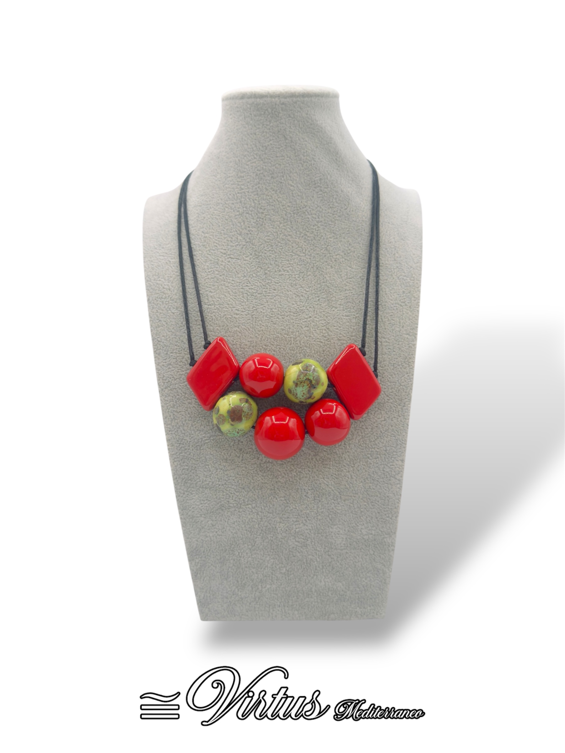 Collana a grappolo artigianale Multi colore in ceramica con laccio coda di topo (3 mm) e chiusura acciaio inox anallergico