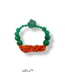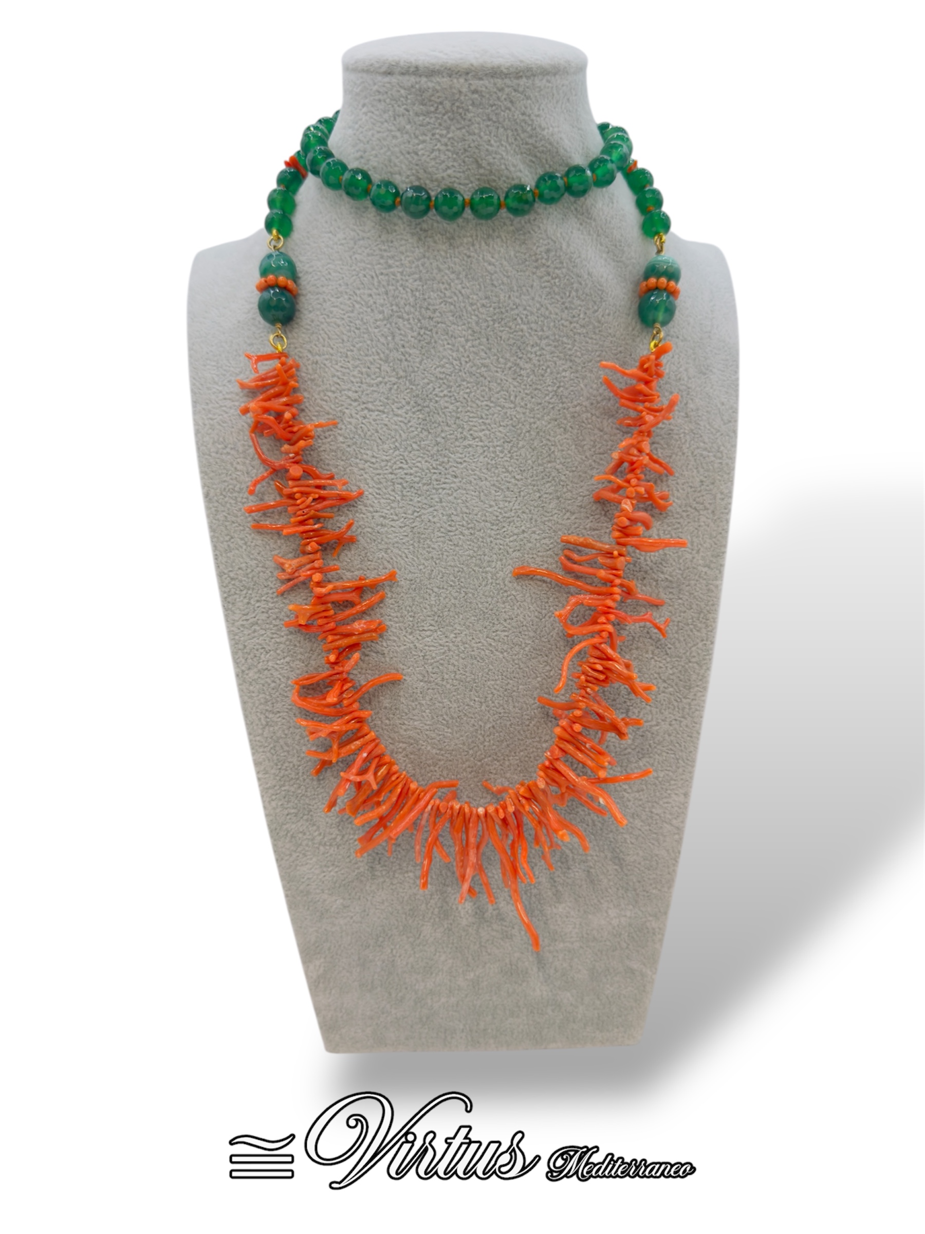 collana artigianale corallo Sciacca a frange e giada verde sfaccettata 8mm con chiusura in argento 925