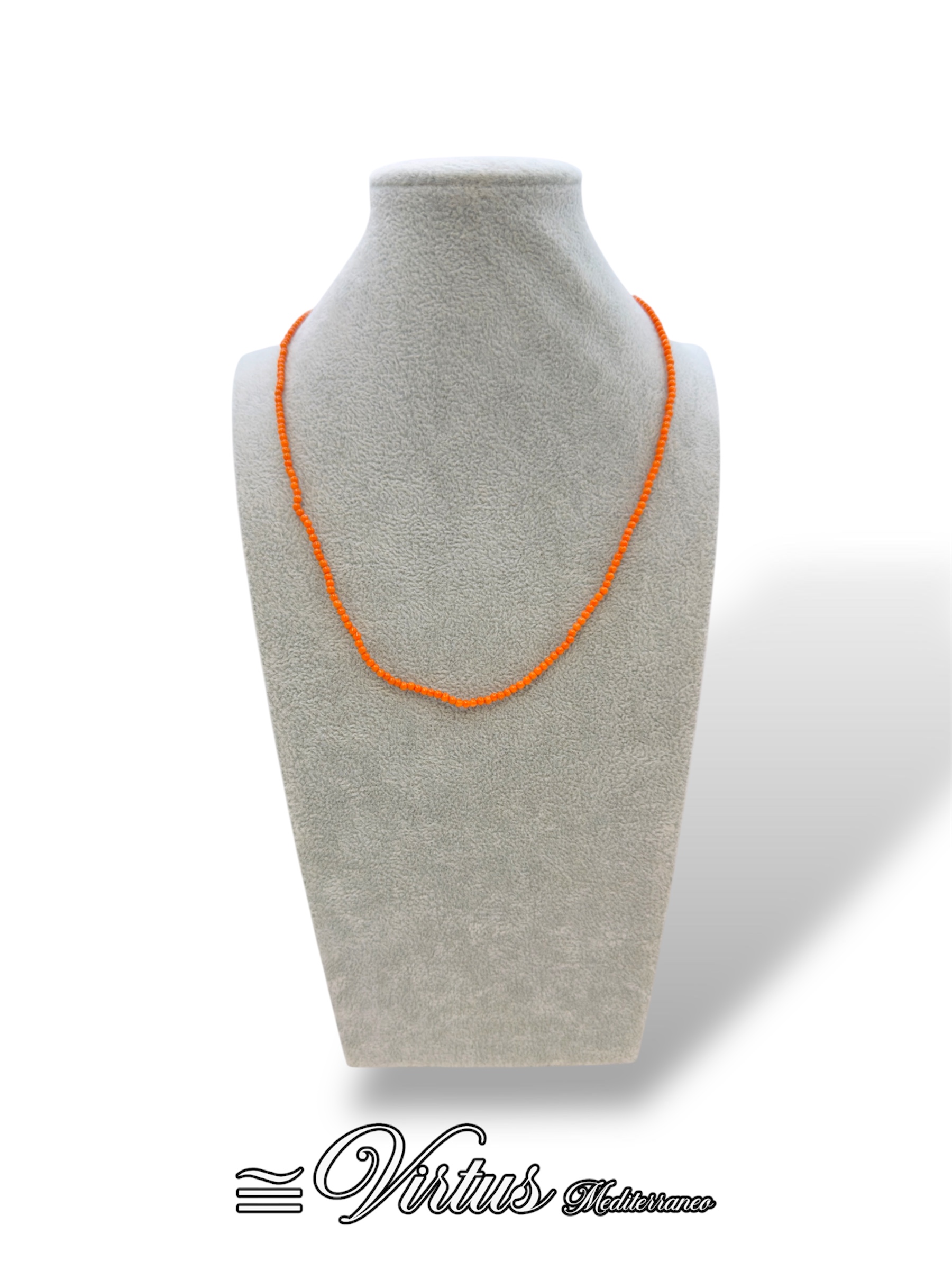 collana artigianale di corallo Sciacca a un filo di corallo sferico 2.0-2.5 mm a chiusura in argento 925