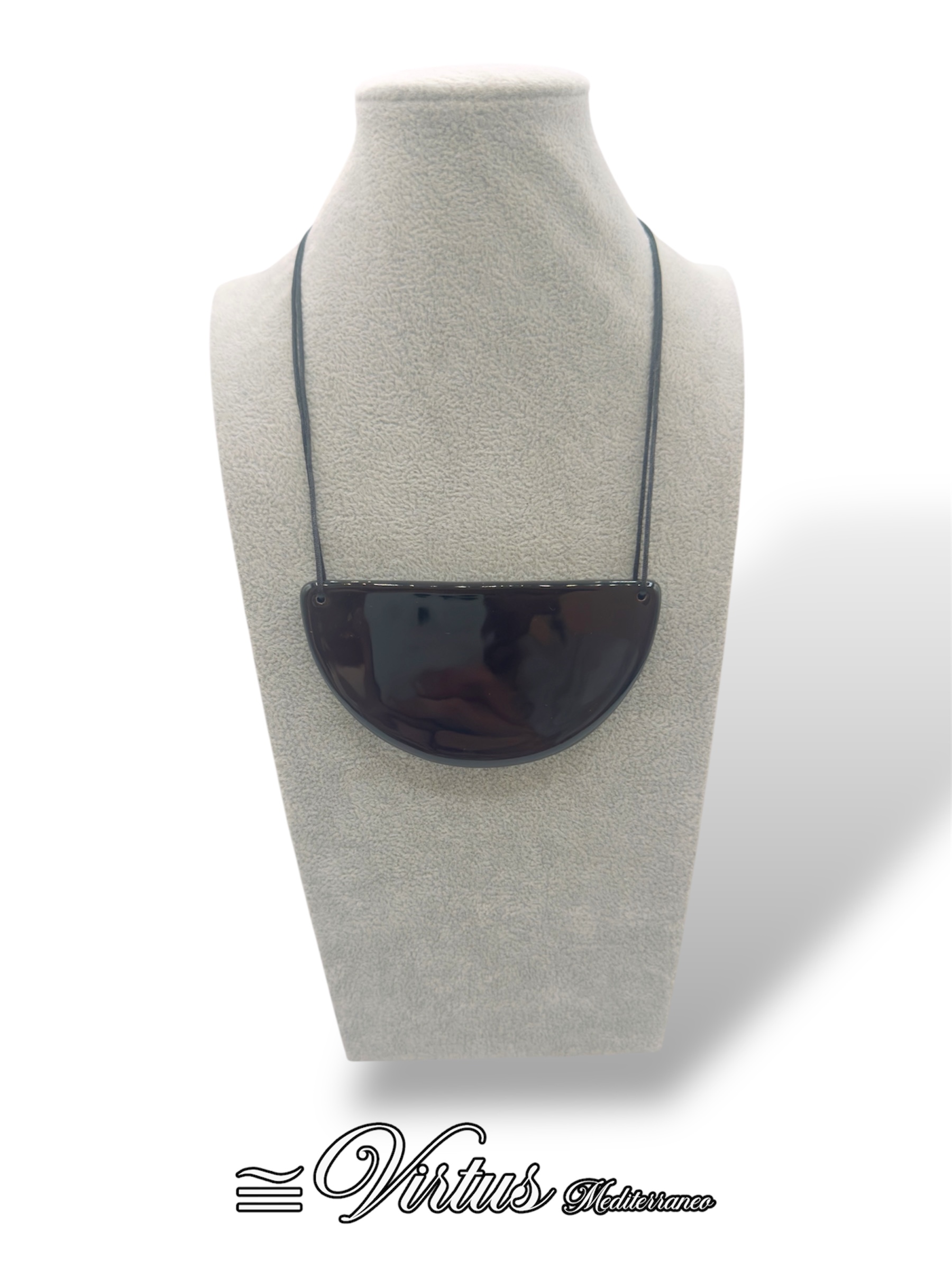 Collana a mezza luna artigianali Nero in ceramica con laccio coda di topo (1,5 mm) e chiusura acciaio inox anallergico