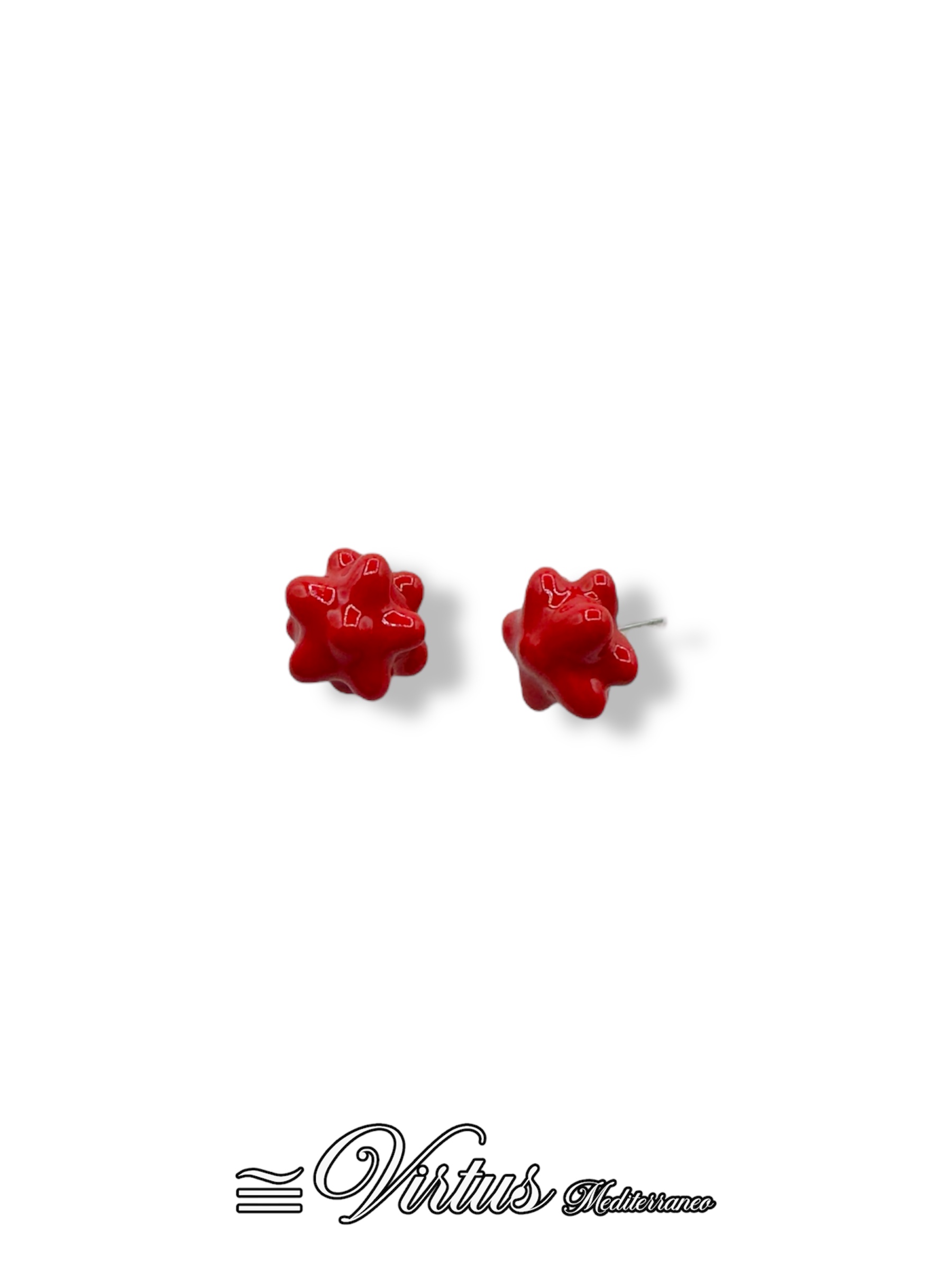 Orecchini a bottone a fiore artigianali in ceramica con chiusura acciaio inox anallergico rosso