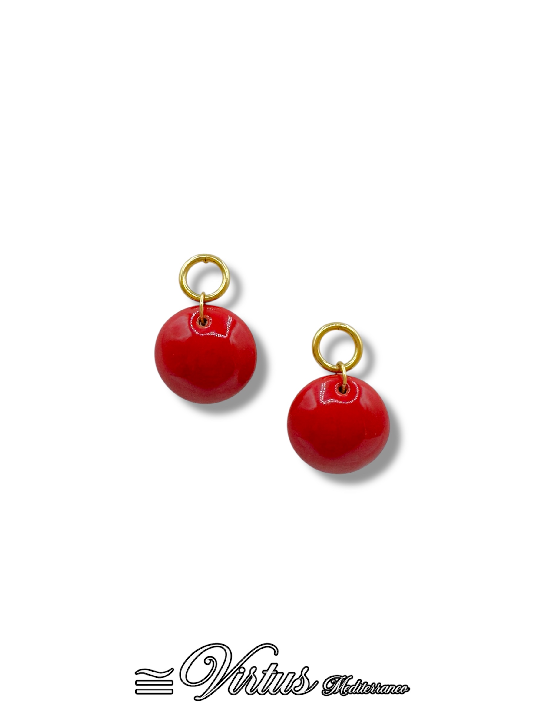 Orecchini a bottone a mezza sfera artigianali con chiusura acciaio inox anallergico rosso