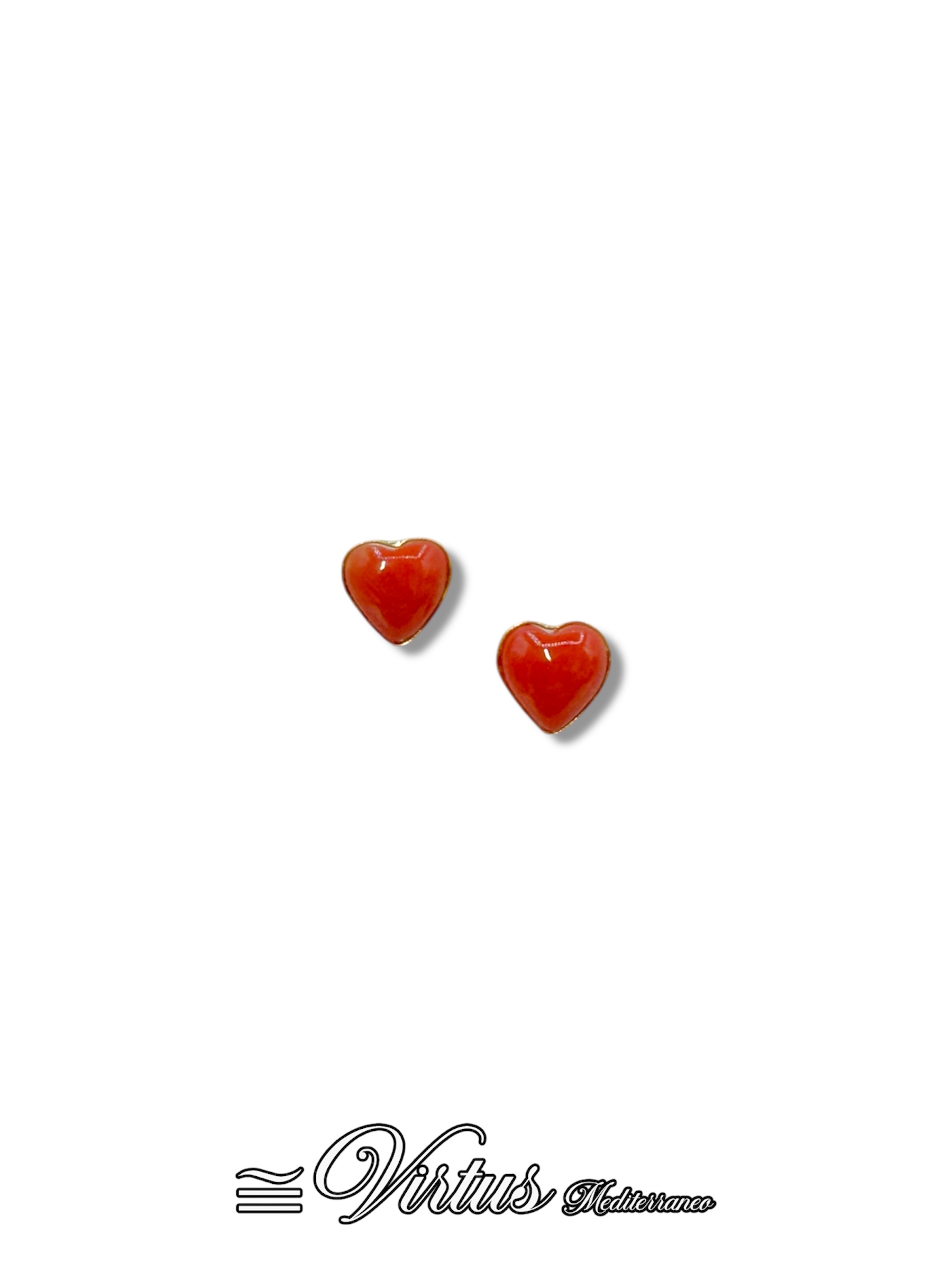 Orecchini artigianali corallo Sciacca a forma di cuore su oro 750% con chiusura a vite.