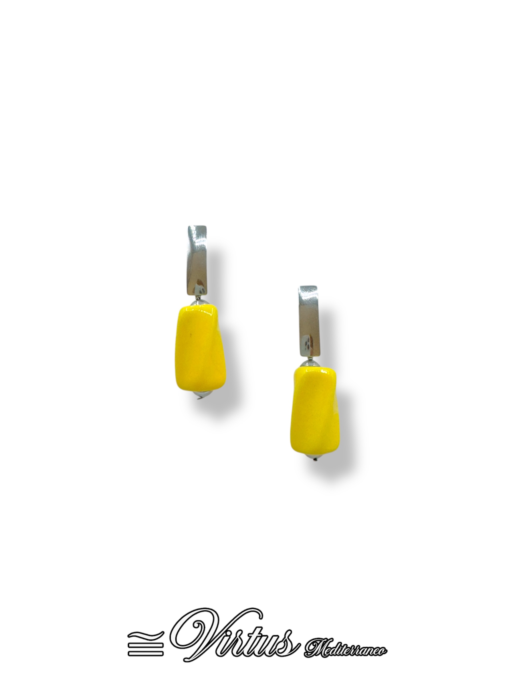 Orecchini pendenti a torciglioni artigianali con chiusura acciaio inox anallergico giallo