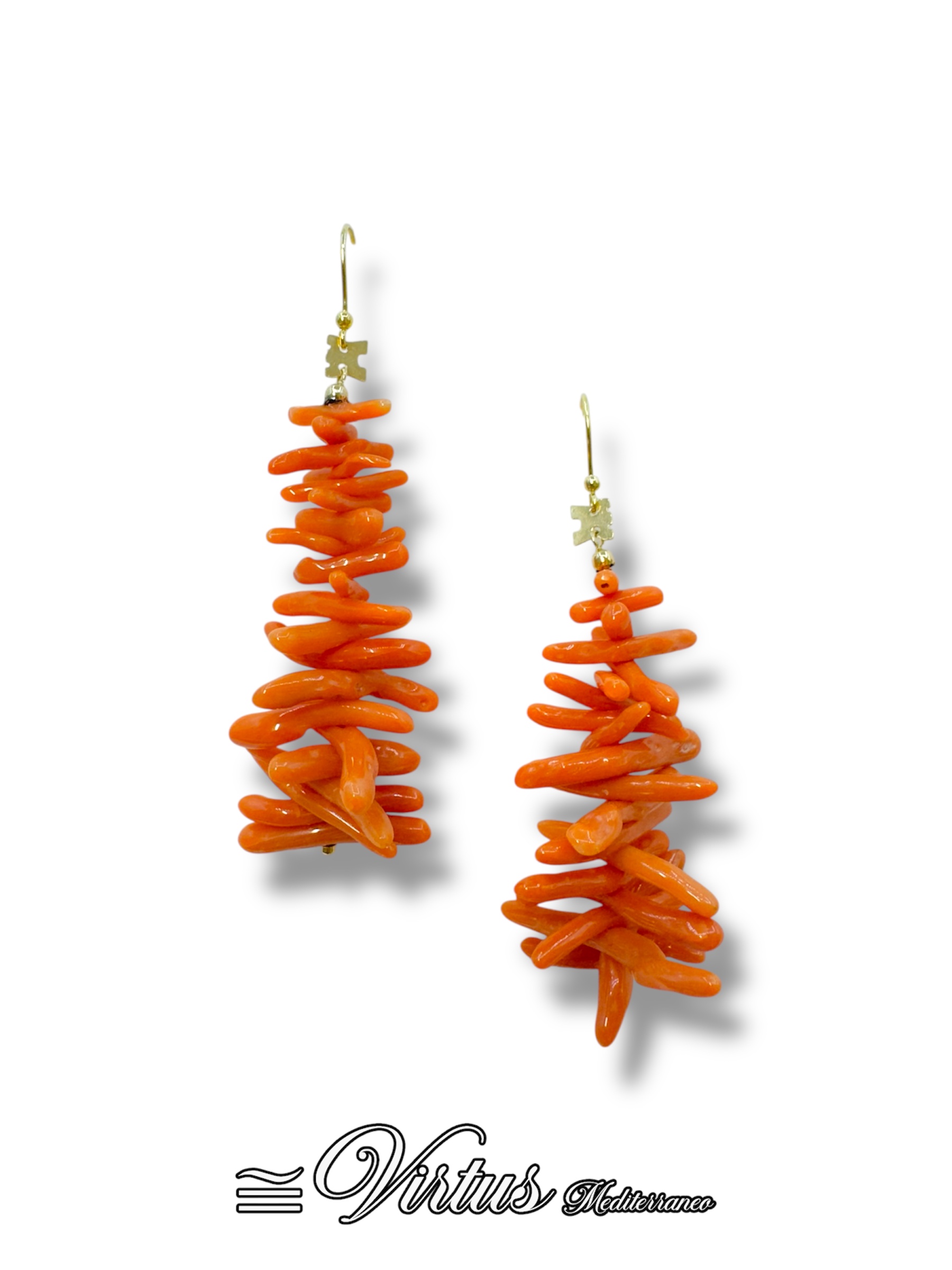 Orecchini pendenti corallo Sciacca a cupolini e oro