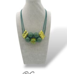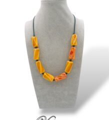 Collana a torciglioni artigianali in ceramica con laccio coda di topo (3mm) con bracciale a piccole sfere e anello multi colore abbinati – tutti con chiusura acciaio inox anallergico multi colore